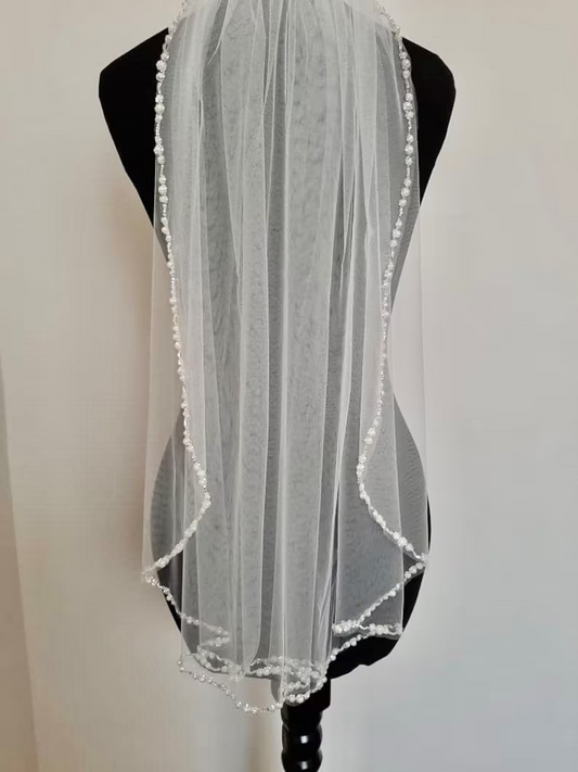 Pearl & Crystal Beaded Veil, Wedding Veil, Beaded Veil, Ivory Veil, White pearl Veil, Elbow Veil, Fingertip Veil, Cathedral Veil,