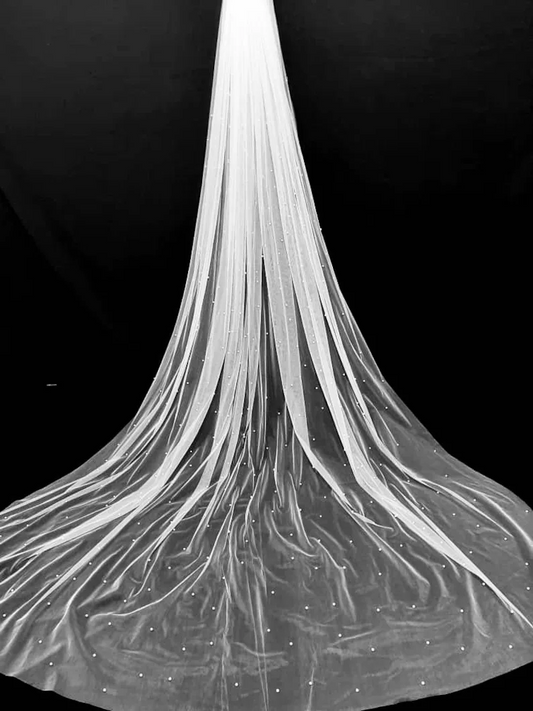 Pearls Beaded Veil, Ivory Wedding Veil, White pearl & Crystal Veil, Elbow Veil, Fingertip Veil, Cathedral Veil - Free Tulle Samples