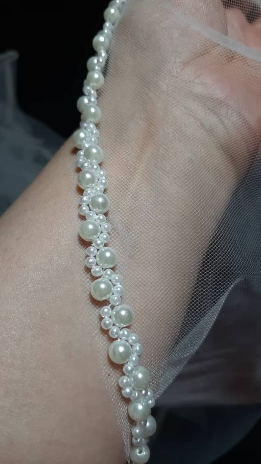 Pearls Beaded Veil with Pearl comb, Pearls Beaded Veil, White pearl, Elbow Wedding Veil, Fingertip Veil, Cathedral Veil -Tulle Samples