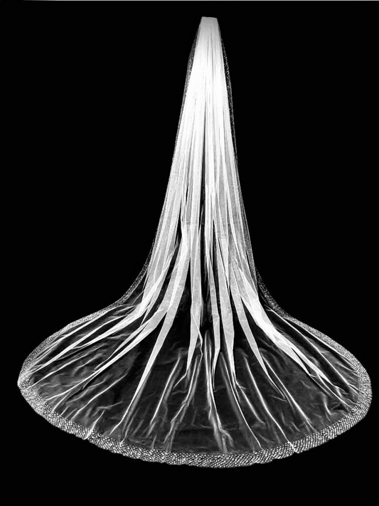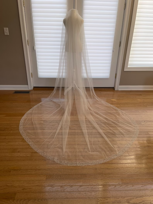 Scallop Edge Beaded Wedding Veil, Crystal Wedding Veil, Scalloped Edge Veil, Cathedral Veil, Beaded Bridal Veil, with Color Samples