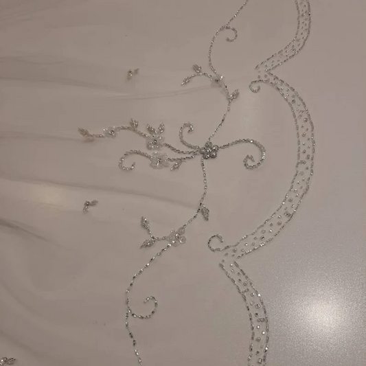 Beaded Scroll Design Angel Cut Beaded Veil, Ivory Veil, White pearl Veil, Elbow Veil, Fingertip Veil, Cathedral Veil - Free Tulle Samples